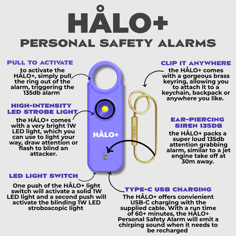 Using the HÅLO+ could not be any easier, simply pull the top ring out of the Alarm and it will emit an ear-piercing siren sound and the 1W LED light will flash with a blinding stroboscopic light. When you are done, simply insert the ring again and the alarm will stop sounding.
